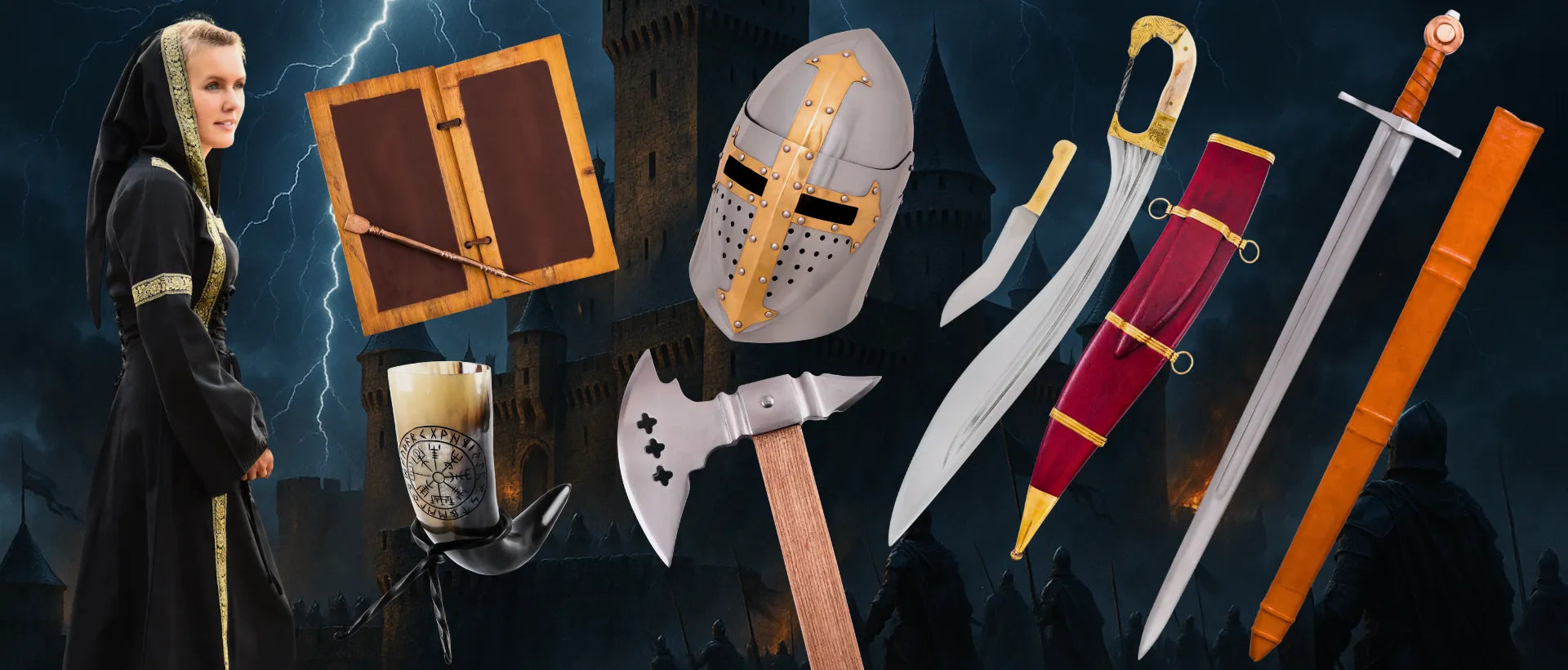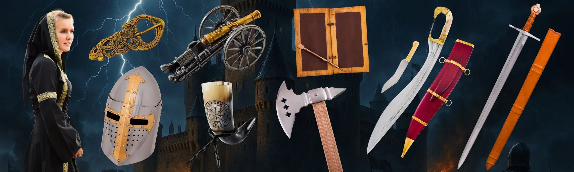 Explora nuestra colección de armas medievales. Cada pieza captura la esencia y la fuerza de la época medieval, perfecta para coleccionistas y amantes de la historia.