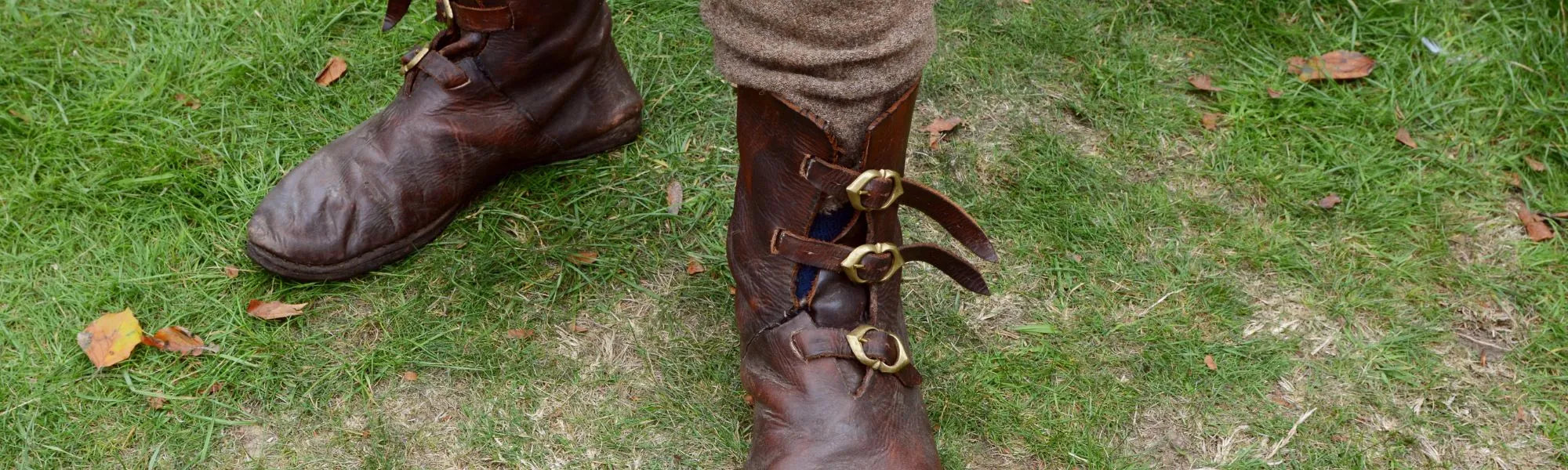 In the Middle Ages, leather shoeswere not just accessories, but an essential partofevery combatant'sand traveler's equipment . Made of tanned leather, sometimes reinforced with studs or double soles, they offered the necessary protectionagainst rough roads, muddy terrain, and long campaign marches. Durable, flexible, and adaptable, they became an essential part of military and civilian attire.