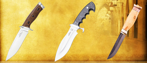 Os aços inoxidáveis ​​modernos (440C, 8Cr13, VG-10) oferecem uma elevada resistência à corrosão e durabilidade do fio, enquanto o aço carbono continua a ser um favorito pela sua facilidade de afiação e fio agressivo. Os cabos são feitos de nogueira , micarta , chifre ou materiais sintéticos como G10 ou FRN , garantindo uma aderência segura mesmo na chuva ou lama. As bainhas, fabricadas em couro curtido ou Kydex , protegem a lâmina e facilitam o transporte no cinto ou no equipamento.