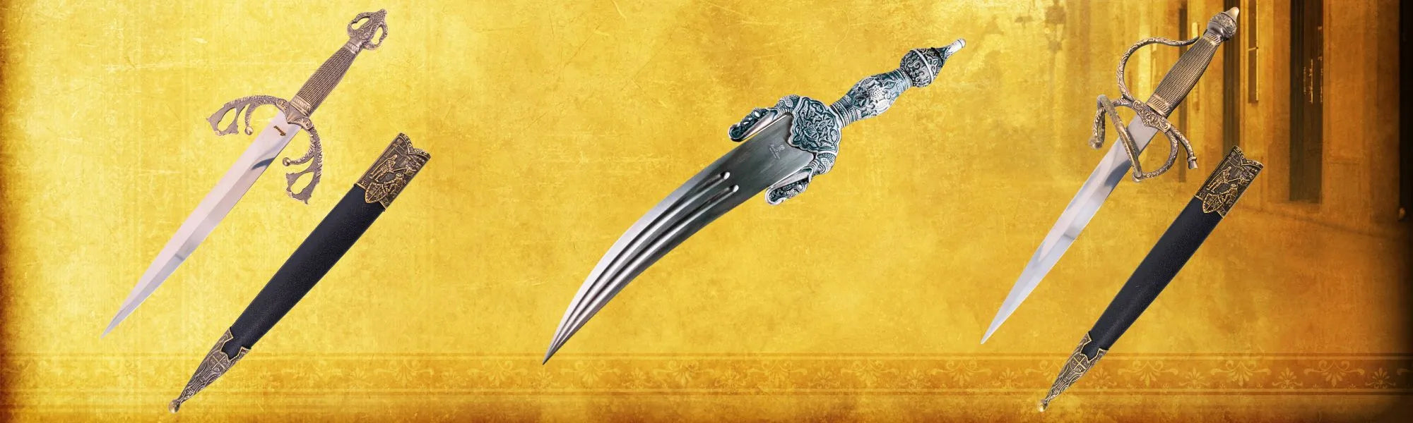 - Réplicas de adagas históricas espanholas em aço de qualidade