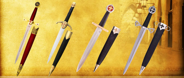 Forjadas em aço temperado e decoradas com motivos templários , as adagas apresentam guardas ornamentados, cabos adornados com cruzes e escudos, e lâminas que narram séculos de história. Perfeitas para colecionadores e entusiastas da cavalaria medieval, cada modelo personifica a disciplina, a lealdade e o misticismo templários.