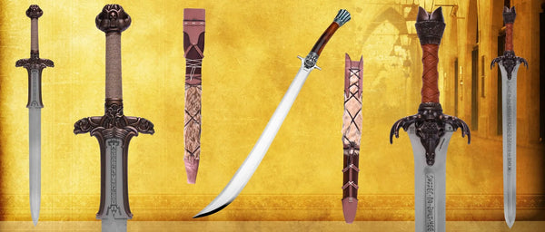 Nascido nas terras selvagens do norte, Conan aprendeu o valor do aço desde jovem. As suas espadas não eram ornamentos, mas extensões da sua alma guerreira: simples, pesadas e letais. Forjadas em aço temperado , com punhos revestidos a couro ou osso, eram feitas para suportar os rigores do combate corpo a corpo e as duras condições do exílio e da guerra.