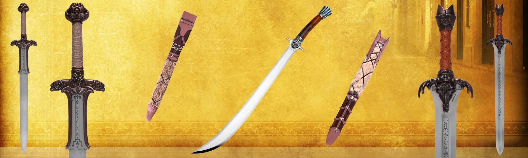 As espadas de Conan refletem um mundo onde a força e a determinação reinam sobre a magia. Com lâminas largas e de dois gumes e um equilíbrio mortal, foram forjadas para cortar escudos e destruir destinos. Não eram armas de nobreza, mas de conquista, criadas para sobreviver num mundo cruel onde só os fortes prevalecem. Cada golpe, cada corte, transporta consigo o eco de uma era em que a civilização apenas começava a forjar a sua lei.